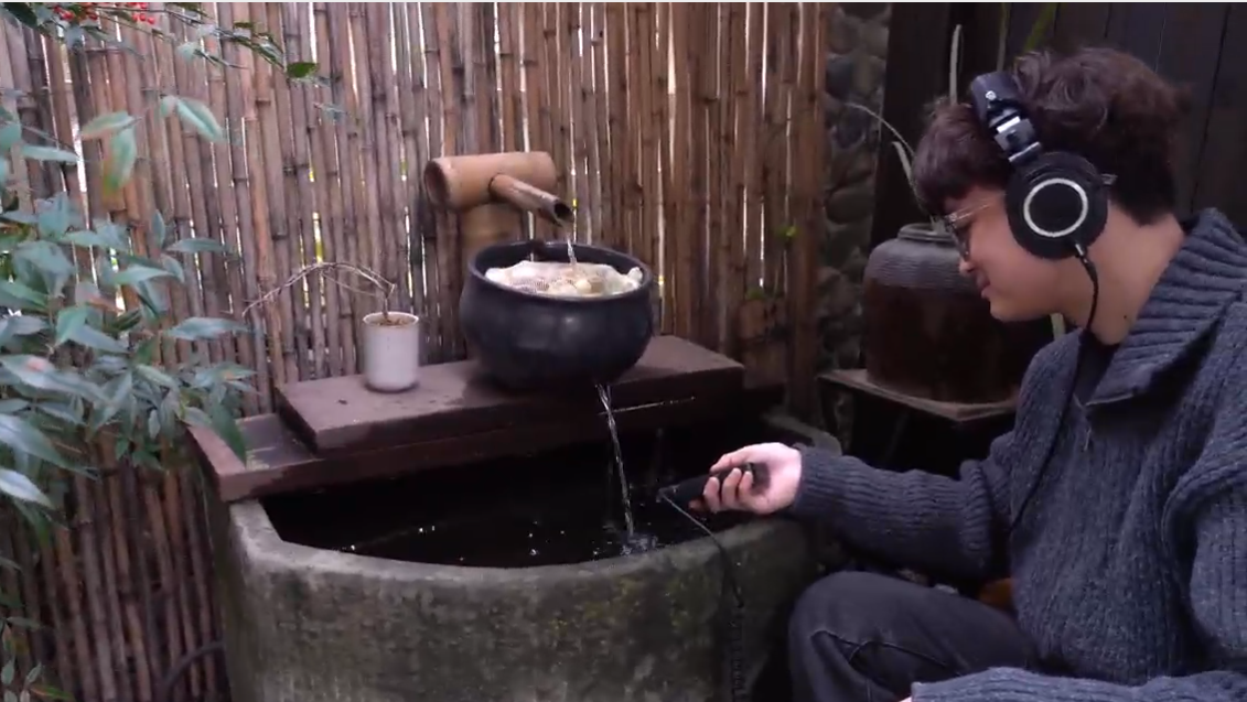 清晨,在光明寺水库边,叶泽少恩手持录音设备,不断将身体靠近水面。最初,他录下的是一片混沌的风水混合声,随着设备触碰水面,耳机里方才呈现层次分明的交响——风声成了背景音,水流走上主场,有深沉的涌动、清脆的飞溅和绵长的流淌。他转入万亩茶园,寻觅的是另一份灵动。“一旦锁定目标,就要学会等待。”叶泽少恩坐在茶树间,有风吹动茶树带来的簌簌声,有鸟儿在远方零星地吟唱,“有耐心才会遇见惊喜,这是开启自然音库的钥匙。”
