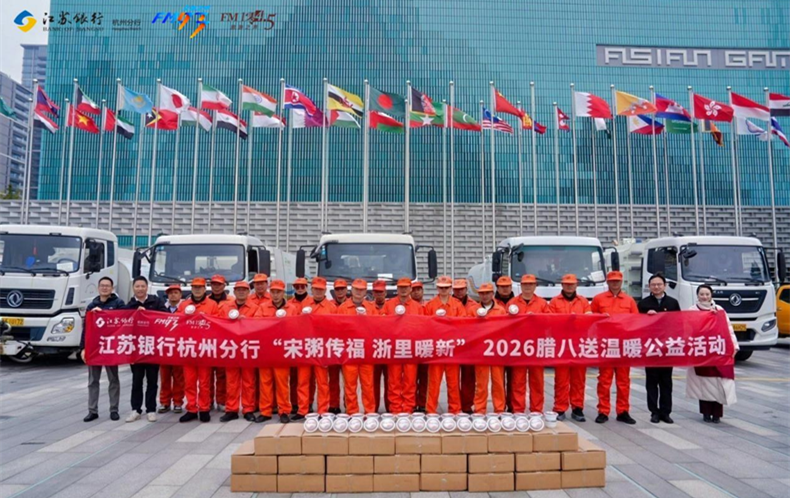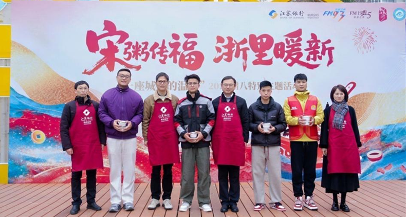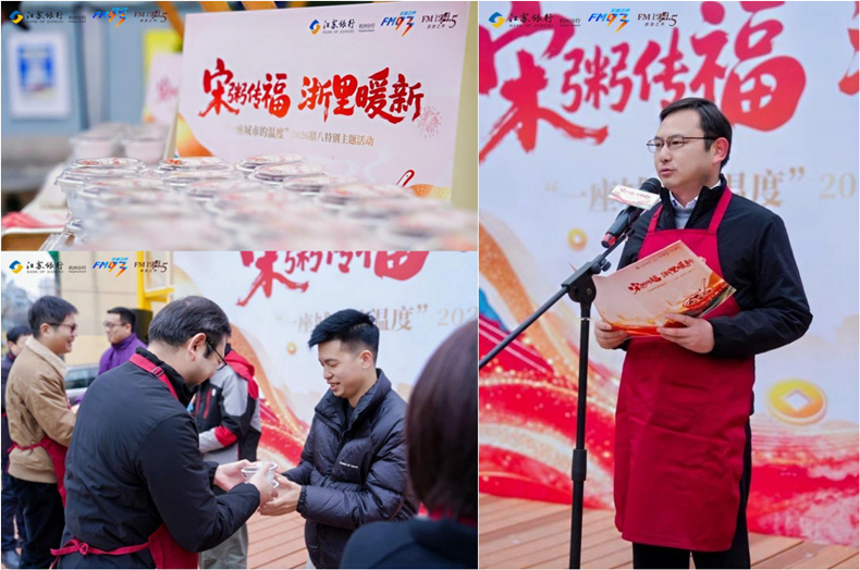 2026年1月26日,伴随着灵动雅致的开场舞《宋韵添福》,江苏银行杭州分行携手浙江广电集团FM93交通之声打造的“宋粥传福 浙里暖新——一座城市的温度”腊八特别主题活动温情启幕。活动以主会场为核心,同步开启多路配送分队,深入全城多地,将融入义乌红糖、武义宣莲的“宋韵八宝福粥”送到更多城市守护者手中,以十二年公益坚守,串联起传统与民生,让城市温度在腊八佳节里全域蔓延。