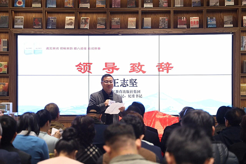 此次活动由浙江省思想政治工作研究会指导,浙江教育出版社集团、浙江省传统文化促进会联袂主办,文字里·浙版书店、天水街道、哈尔滨工程大学浙江校友会、淘品文化、浙江省报业协会等多家单位鼎力协办,以“遇见宋词·领略宋韵·腊八送福·喜迎新春”为主题,汇聚出版界、文化界、教育界数十位文人名士,同赴千年宋词之约,共襄《遇见宋词豪放派》《遇见宋词婉约派》两部新作揭幕的文化盛举,论道宋韵文化的传承、发展与创新之路。