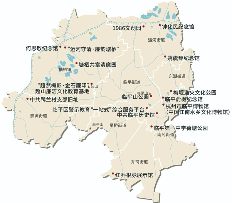 临平区主要廉洁教育场所分布图。 临平区纪委监委供图