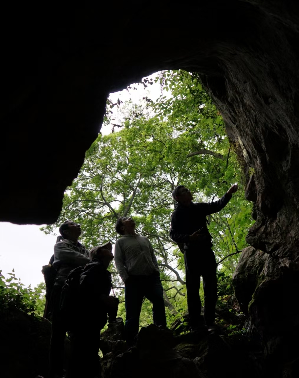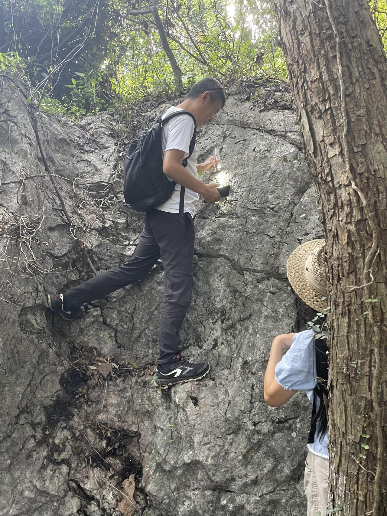奚珣强和朋友山中访石