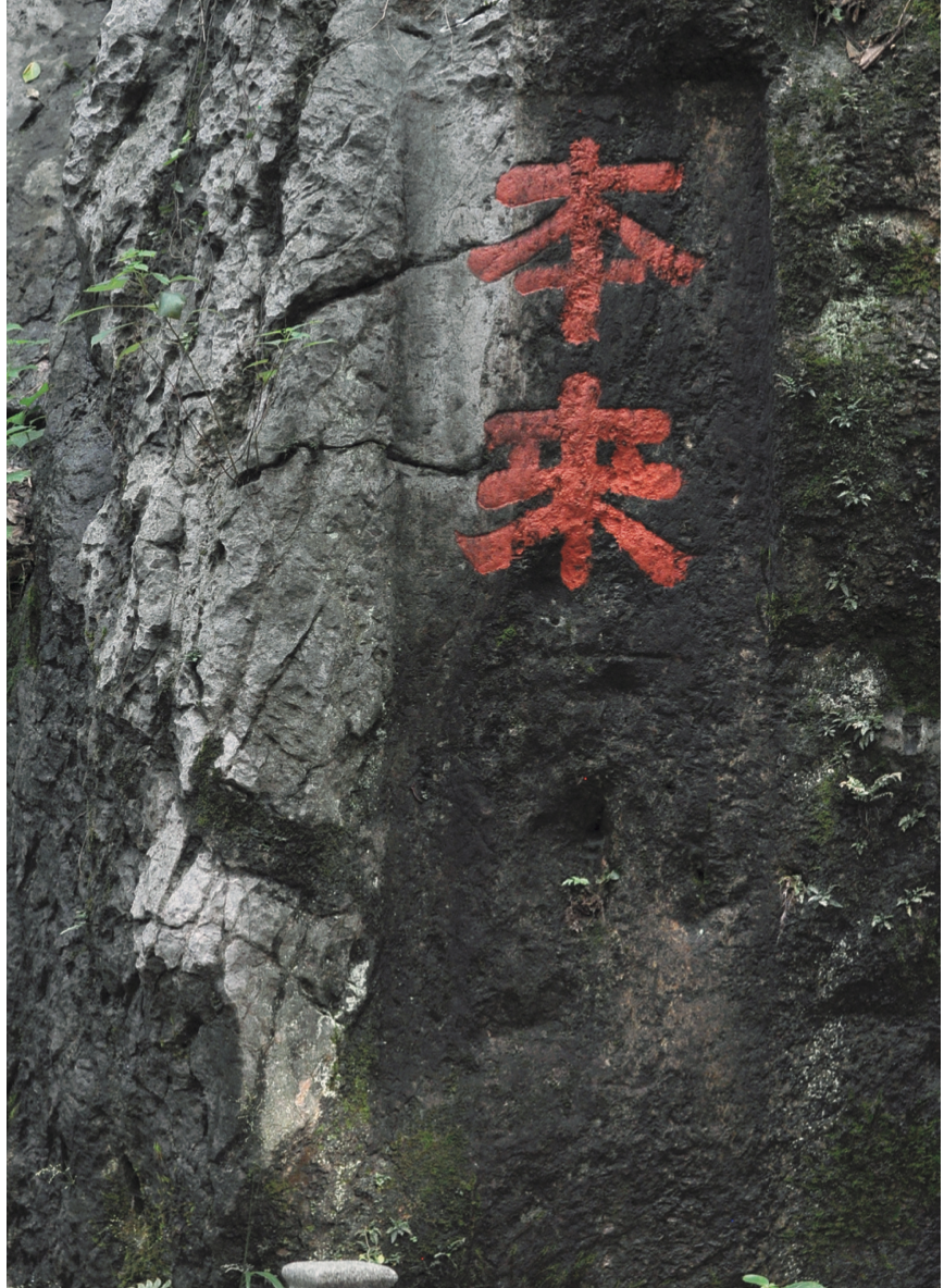 有一天,他再次从月岩经过,凝视胡松所题的“本来面目”四个大字。只见在苍老崖壁上,“面目”两字所处的位置,因为石头的“老去”,细砺纷纷掉落,相较以前,又风化了不少。