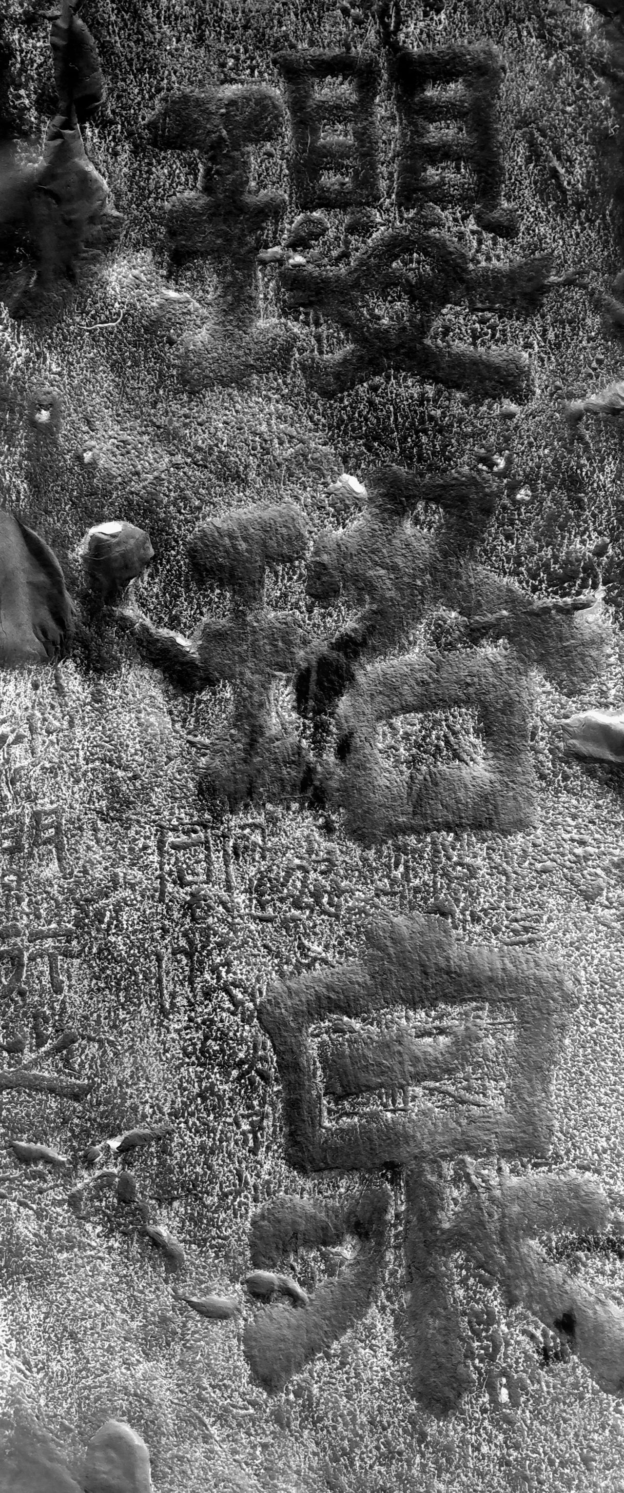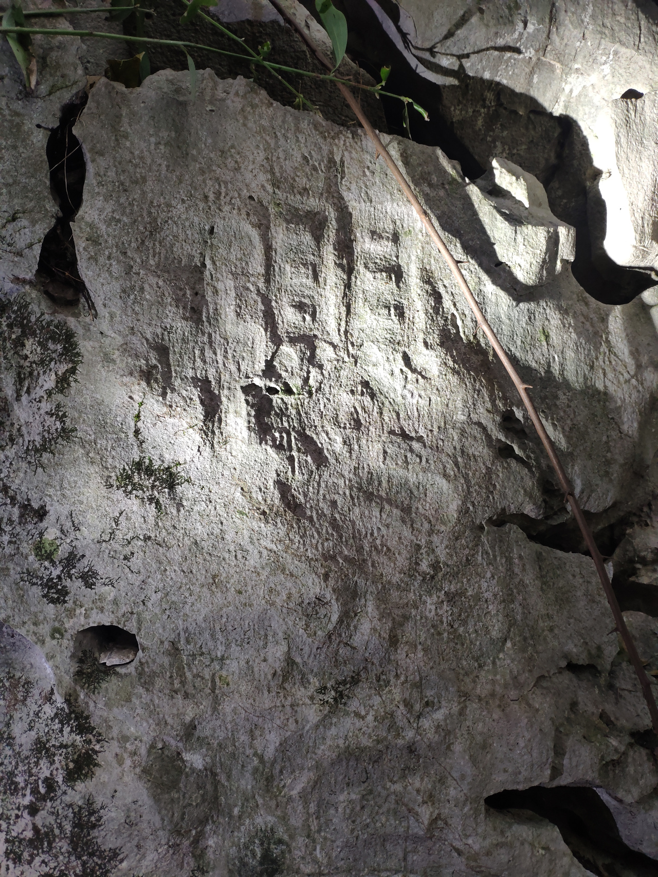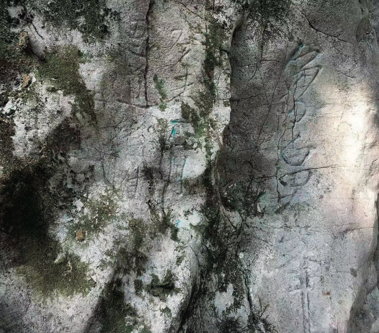 苔藓覆盖石头——我和石梅把照片无限放大,感觉眼睛都要瞪下了,也看不出有字。