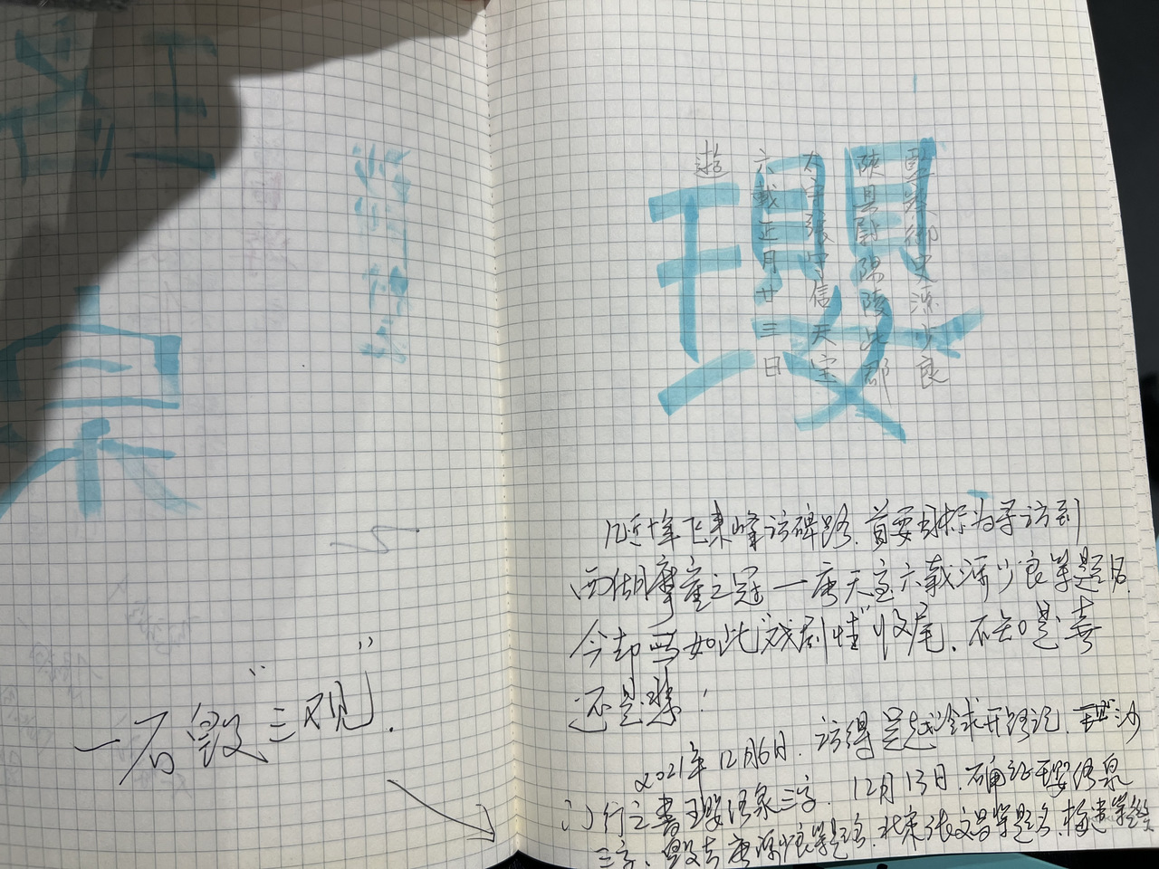 那年冬天,他来到瑞石山访石,看到了这三个明代人的“到此一游”,回去记在了他的小本本上: