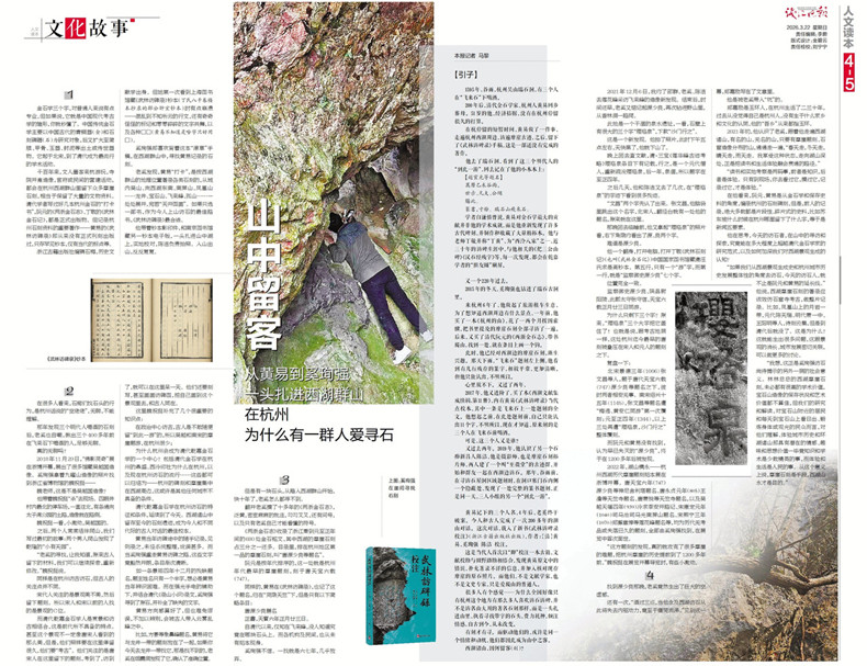 “如果我们从西湖景观生成史和杭州城市历史发展整体性的角度去访石,今天的访石人,就不止是阮元和黄易的延长线。”郑嘉励认为,在不知不觉间,奚珣强的找寻,拓展了金石学的方法和议题的边界,启发了人们观看西湖山水的方式。