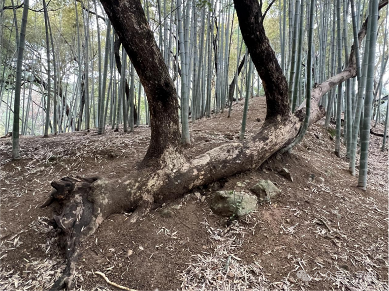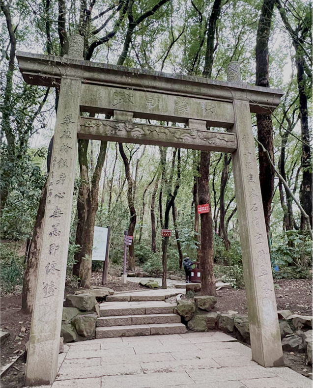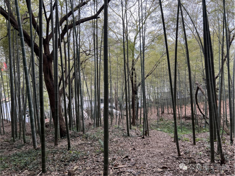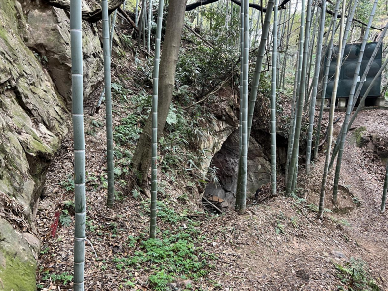 另外,同是在《湖山便览》卷五·棲霞岭一节中记载(图三十三)“扫帚坞,在棲霞岭北之黄山桥。宋赵经略花园,制置使孟珙购地建护国仁王寺于此。”,也就是说在扫帚坞这个区域,曾经有南宋经略安抚使赵与筹的私家花园。赵与筹何许人也?西湖三堤之一的赵公堤即是其杰作,其为宋太祖赵匡胤十世孙,南宋中后期重要宗室大臣,其曾在南宋淳祐元年至十一年(1241~1252)任临安知府。只要到过扫帚坞就会发现此处简直就是世外桃源之地,隐于闹市,但入得此内,却恍如隔世(图三十四、三十五、三十六、三十七、三十八、三十九、四十)。中国式山水该有的要素,奇峰、峻岭、曲径、幽壑、云路、苍苔、翠竹等其一应俱全。南宋陆游《游山西村》中的那句“山重水复疑无路,柳暗花明又一村。”用在这里再恰当不过。至今在其山腰缓坡处依然能够看到较为明显的三级月台的遗迹,其上在古代应该建有楼阁式的建筑。另外,此处还有南宋制置使孟珙购地捐建的护国仁王寺(图四十一),所以,扫帚坞所承载的历史信息不可谓不厚重,从山谷底部到黄龙洞口这一开阔区域,大致分为四级,逐级上升,每级应该都存在古代的建筑基址,其建筑面积规模可能比现有灵隐寺的面积三倍还要大。并且,一些台基痕迹依然清晰可辨,条石、青砖、瓦砾、碎瓷等比比皆是(图四十二、四十三、四十四、四十五、四十六、四十七、四十八、四十九、五十、五十一)。后续如果文物考古部门能够扫帚坞这一范围进行专业系统性地考古发掘,很有可能会有举世瞩目的发现。