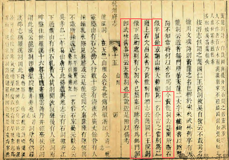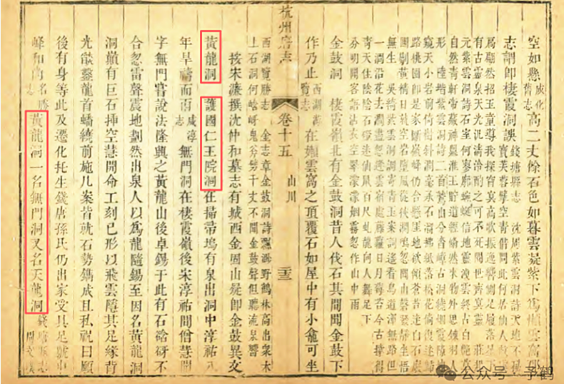 图二十《杭州府志》·山川·卷十五 关于黄龙洞的记载