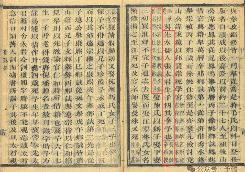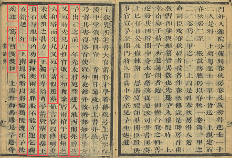 终于,在由其受业门人根据其留存的相关文稿校编的《西河合集·墓志十一·自为墓志铭》一文中逐一找到了答案。文中记述(图五)“...方予出亡之前一年,先太君死。暨避入淮西,则先赠公又死。时先兄以推官改仁和教谕,厝两棺于杭州之六和塔。而先兄又死,予请假迁葬,值言官以修《明史》未成阻之甚力,上独重孝治,可予请。暨葬,则畚土负石,身亲事凶,功得痹疾,两足肿胀不能立,遂乞病在籍...”,“方予出亡前一年”是指因其在顺治十三年(1656)岁暮,因仇家诬陷其“聚众杀营兵”遭官府缉捕,被迫改名王彦(字士方),亡命淮上(今淮安一带)。所以,“前一年”就是指顺治十二年(1655),这一年其母亲去世。而后,在他避祸逃至淮西(今安徽西部、河南东部一带)的时候,其父亲也去世了,时间是在顺治十三年(1656)。当时,他的长兄毛万龄由府级推官(正七品)改任杭州府仁和县教谕(正八品),并将父母的棺柩临时停放在杭州六和塔即开化寺。其中,“而先兄又死,予请假迁葬”与《清史稿》中的记述刚好吻合,毛奇龄在康熙二十四年(1685)被任命为会试分房阅卷官后不久就请假归籍,其请假归籍的目的是“迁葬”,就将其父母灵柩运回萧山老家安葬。而这一年其长兄毛万龄去世,也在康熙二十四年(1685),请假应是在其兄去世之后。后面,其请假流程因其正在参与修撰《明史》而遇阻,但康熙帝考虑到推崇以孝治国的理念,批准了其告假归籍的请求。但为什么他会得“痹疾”,文中也做了说明“暨葬,则畚土负石,身亲事凶,功得痹疾”,意思就是,等到安葬父母时,他挑土背石,全身心投入丧事的料理,终因劳累过度,便患上了痹疾(因经络不通、气血运行不畅导致的关节疼痛)。并且,自此后两足肿胀到不能站立,于是,他就以此为由请假休致在原籍养病。