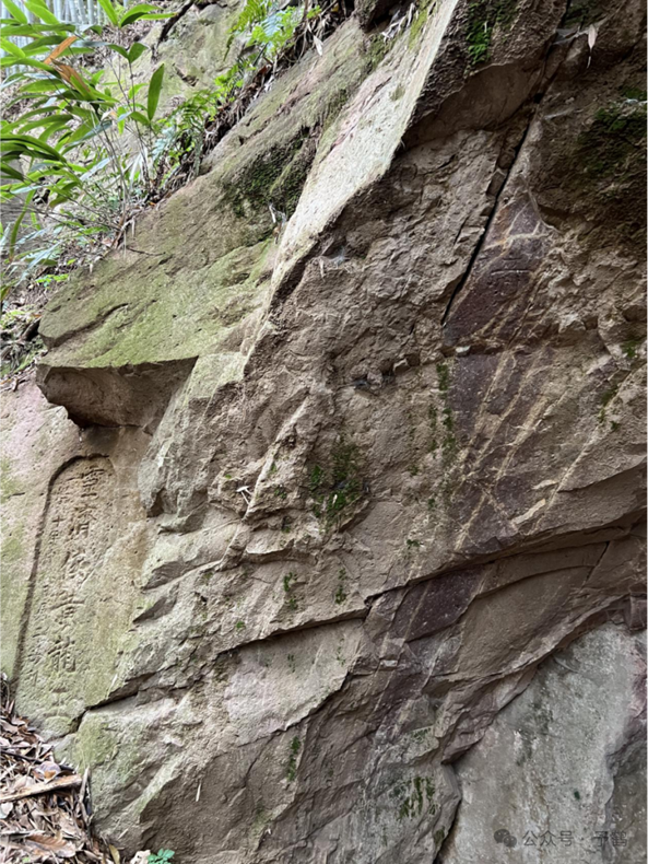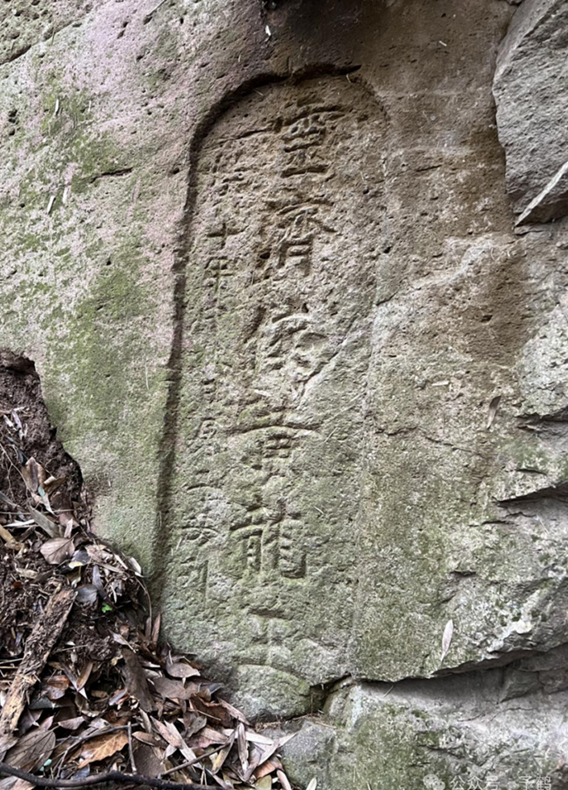 该处题刻(图一)位于宝石山北麓的黄龙洞圆缘民俗园景区外东北侧山腰,靠近景区后山出口,在黄龙洞洞口左侧“灵济侯黄龙王/洪武十年中秋日屠子芳刊”石刻(图二)斜上方一米左右的崖壁边缘(图三)。早在几年前到访此处,就发现了“奇”、“山”这两个字,但由于该处崖刻石块凸凹不平石块泐损比较严重,加之雨水裹挟的泥浆将其大部分区域覆盖,一直没搞清楚题刻的具体内容,故将其归入了残刻的行列。不过,念念不忘必有回响,近来,对该处石刻的破译终于迎来了转机。暇日,与友同登宝石山,再访黄龙洞,有了惊人的发现,这方题刻竟然与明末清初萧山大儒毛奇龄有关。伴随着研究的深入,其神秘面纱被一缕一缕地揭开。该处应是目前杭州地区发现的唯一一处毛奇龄摩崖题刻,为其卜居杭城增添一例实证,其历史价值不言而喻。