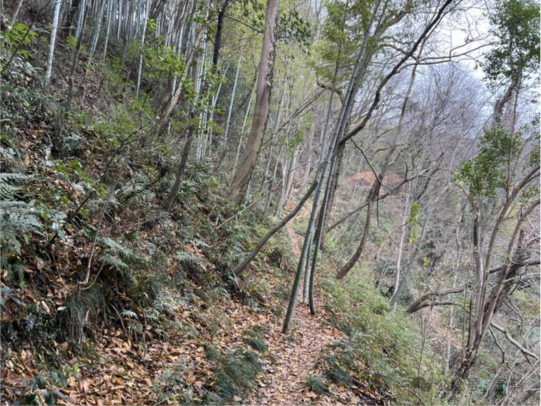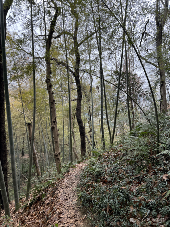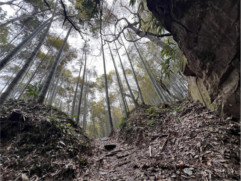 图三十五 扫帚坞林间小径,左侧为峭壁,右侧为悬崖