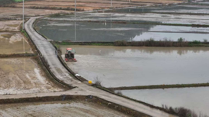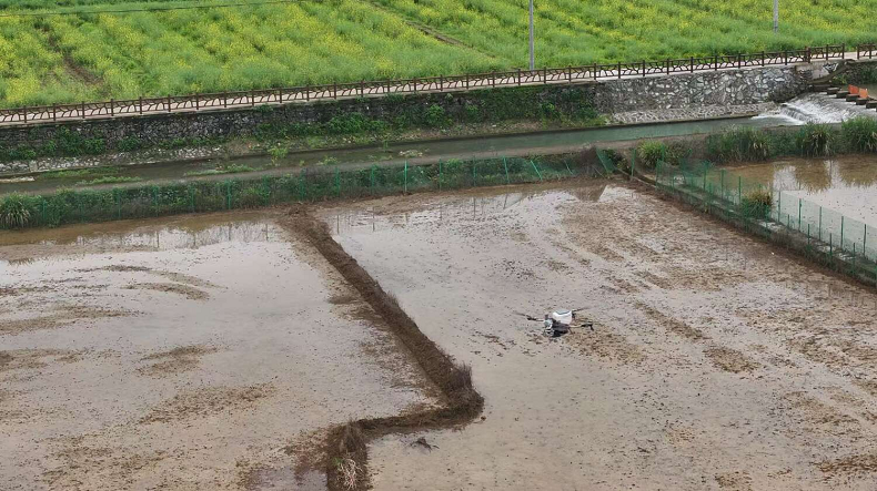 目光转向淳西南片内地势起伏的梯田、形状零散的不规则田块,这里没有大型农机的施展空间,却成了农用无人机的“主战场”。一架银灰色的无人机满载着240斤稻种稳稳升空,在田间低空匀速飞行,种子通过精准播撒系统,均匀地落进泥土里,不过短短15分钟,50亩田地的播种作业就全部完成。“这效率太惊人了,一台无人机一刻钟的工作量,就抵得上一台高速插秧机干一整天!”吴俊男指着空中作业的无人机,语气里满是赞叹,“像梯田、零散田块这类受地形限制的田地,传统农机进不来、干不了,无人机就能完美破解这个难题,它不受地形约束,飞一圈就能完成播种,彻底打通了复杂地块春耕的堵点,把淳西南片每一块土地的农时都牢牢抓在手里。”