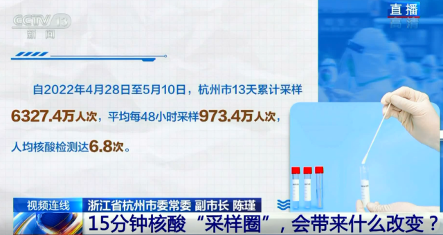 央视新闻客户端报道 5月17日晚上,央视新闻频道《新闻1+1》栏目在直播中连线杭州市委常委、副市长陈瑾,围绕杭州是怎么建立步行15分钟核酸“采样圈”、如何为市民提供便捷采样服务以及目前已取得的成效等展开对话。