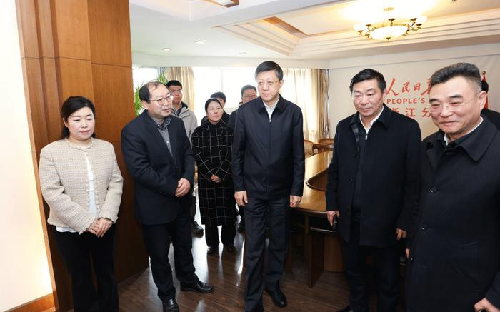 近期,省委常委、市委书记刘非走访在杭中央媒体。这是刘非参观中央广播电视总台浙江总站采编和技术工作区,了解重点报道、运营模式及短视频基地建设进展情况。