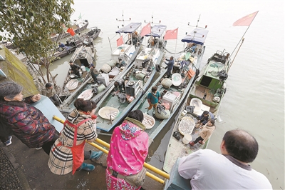 昨日中午,在萧山区闻家堰水文站附近的钱塘江边,十余条小渔船集中停靠在这个自发形成的渔市码头上,叫卖着当日清晨起从江中捕捞到的各种鱼获,不时有喜好江鲜的食客开车前来,挑上几条。 根据相关通告,为了保护和修复钱塘江流域的渔业资源和生态系统,从3月1日0时起至6月30日24时,钱塘江干流首次实行为期四个月的禁渔期,美味的江鲜也将暂别市民餐桌四个月了。
