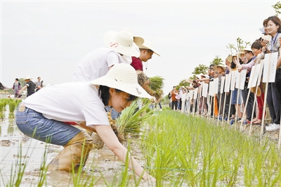 一声令下,来自西湖区各机关、街道乡镇的四十支队伍160人卷起裤腿,捧着秧苗,向比赛场地奔去。 灵隐街道东山弄社区的工作人员潘洁敏小心翼翼地趟着水。“农民插秧很不容易。”第一次体验的她深有感触地说,一脚踩下去,脚就被淤泥吸住了,拔不出来。而她身边,好几个人就摔倒在水田里。 看似简单的插秧更不容易了,刚插下去就东倒西歪一大片。好在,有双浦当地的农民在一旁示范指导。“一是秧苗不能拿太多,一定要适量;二是姿势要正确,不仅两只手要配合好,两只脚也要配合好,保持匀速前进;三是插秧苗时,除了注意行距株距,还要注意覆土深度,太深太浅都不行……” 西湖区有关负责人表示,通过举办此次亲田园、品农事的活动,深入挖掘了中国传统农耕文化,并组织动员广大青年投身乡村振兴实践,唱响一曲人与自然和谐共生的“田园牧歌”。 此次活动现场,位于双浦镇流转土地上。据之江城投集团负责人介绍,2017年至2018年,该集团针对西湖区双浦镇完成流转土地28000余亩,同步开展全域土地生态修复,累计新增水田2000亩以上。 整个之江地区今年春耕春播约有7200亩。精心筹备的春耕冬播工作迎来的不仅是连年的丰收,更使“春之黄花”、“秋之稻浪”等城市难见的自然美景成为常态,使西湖区成为开窗就能看得见自然、闻得到稻香的生态宜居之地。 |