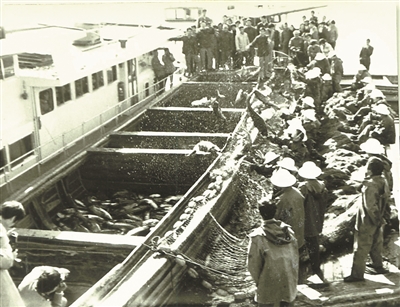 运输鲜鱼(老照片)。
