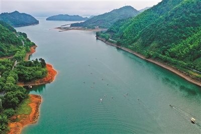 杭州日报讯 昨日一早,在千岛湖,来自河北、大连等省市赛艇队的数十条赛艇划破平静的水面,开始每天例行的晨训。随着疫情防控形势趋缓,这里的运动休闲项目正率先回暖。记者 李忠 摄