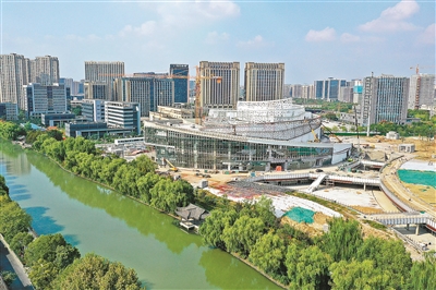 杭州日报讯 10月10日,位于拱墅区大运河中央公园核心区的运河大剧院正在披上“银装”,这座大运河畔的艺术殿堂主体工程已完工,幕墙及室内外装修也已完成80%以上,预计可在明年3月竣工交付。