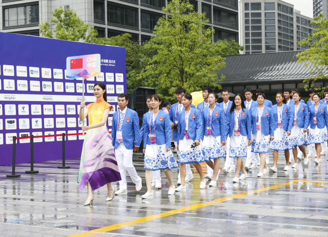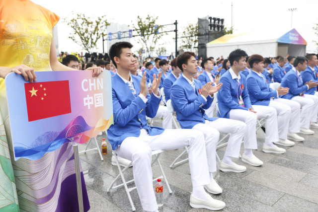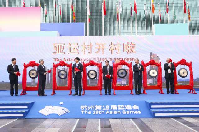 杭州第19届亚运会亚运村开村仪式暨中国体育代表团欢迎仪式举行